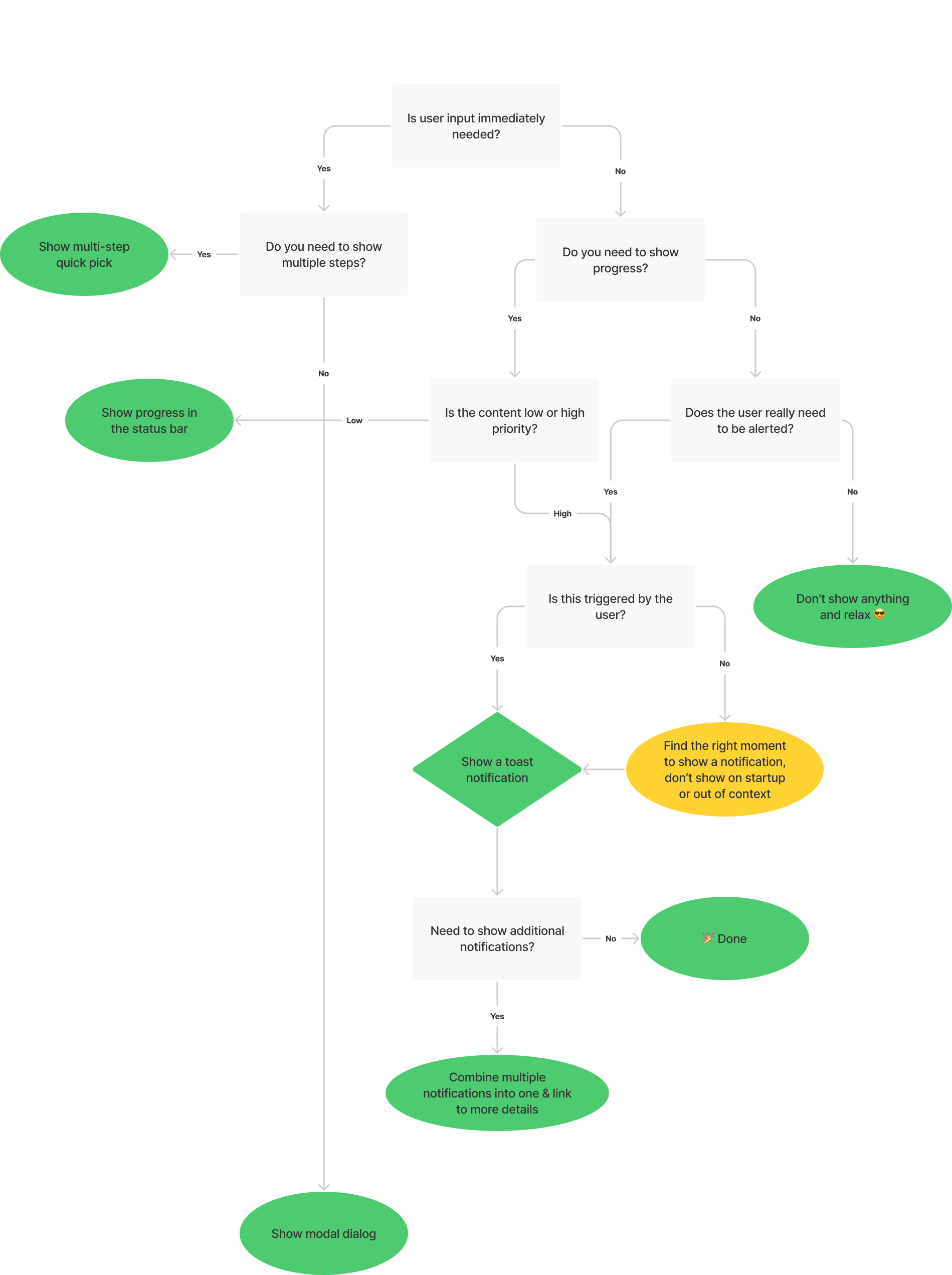 為了尊重使用者的注意力,限制傳送通知的數量非常重要。為了幫助您決定是否應該顯示通知,請遵循我們的通知決策樹。