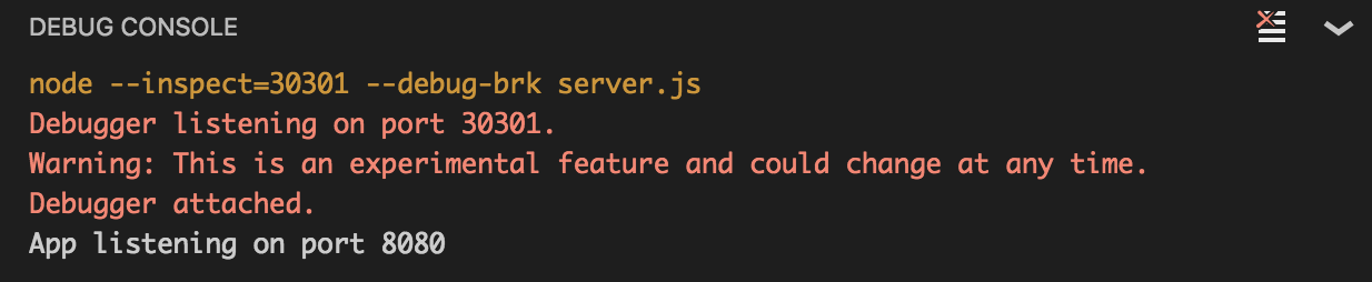 請注意,它能夠檢測到應用程式的啟動指令碼是 server.js,而且我們不需要更改任何內容即可使除錯正常工作。