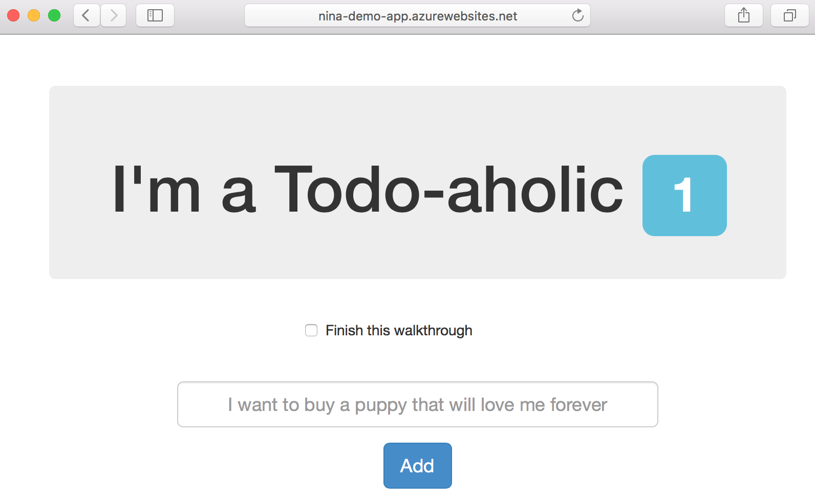 單擊 Save 按鈕,然後返回瀏覽器並重新整理它。嘗試新增和刪除待辦事項,以證明應用程式現在可以工作,而無需更改任何內容!我們只是將環境變數設定為我們建立的 DocumentDB 例項,該例項完全模擬 MongoDB 資料庫。