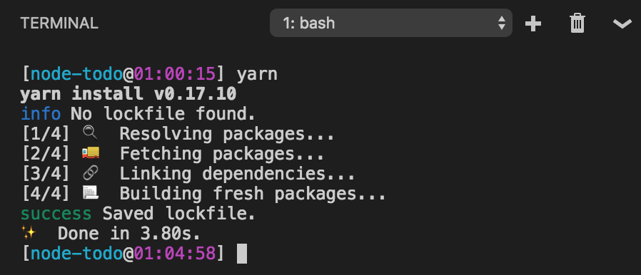 透過 Yarn 安裝應用程式的依賴項會導致生成 yarn.lock 檔案,該檔案提供了一種可預測的方式來在將來重新獲取完全相同的依賴項,而不會在 CI 構建、生產部署或其他開發人員的機器上出現任何意外。