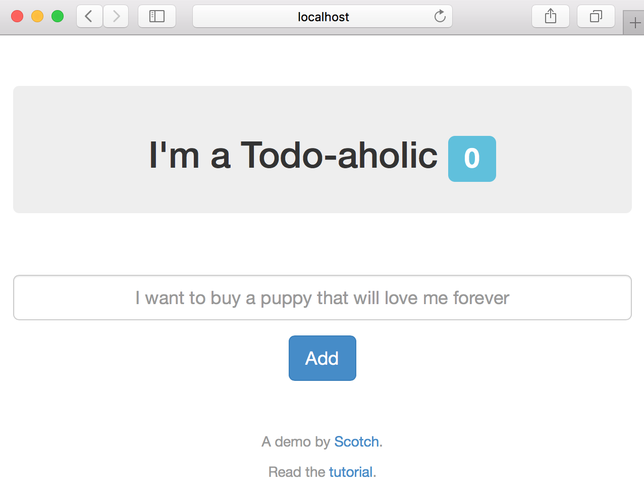 此演示使用了一個由 Scotch.io 建立併發布的一個簡單的 todo 應用程式。它是一個單頁 MEAN 應用程式,因此使用 MongoDB 作為資料庫,Node/Express 用於 REST API/Web 伺服器,Angular.js 1.x 用於前端 UI。使用以下目錄跳轉到感興趣的部分,否則,請繼續閱讀。